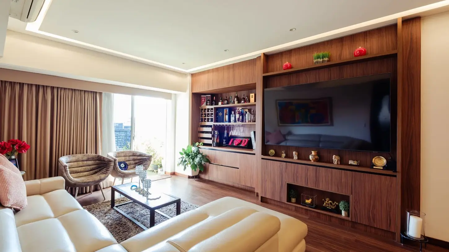 Fresh from a new renovation, the home boasts custom wood flooring imported from Italy, giving every step a sense of refinement. The open-plan living area spills onto a private balcony, perfect for morning coffee or golden hour wine, with sweeping views of Bonifacio Global City and beyond.